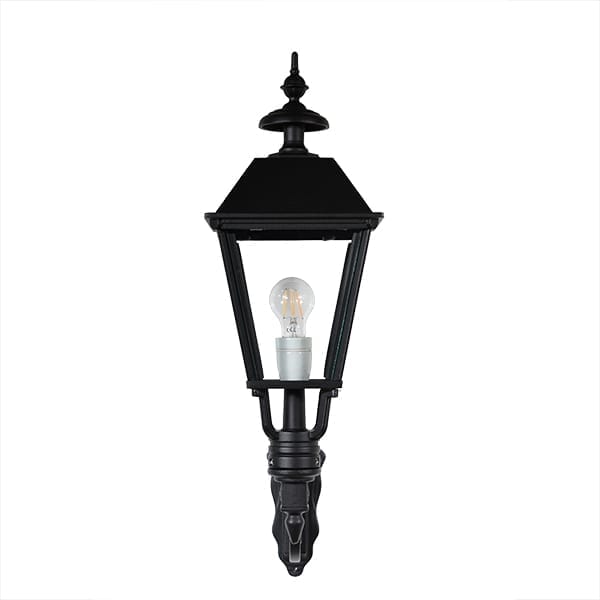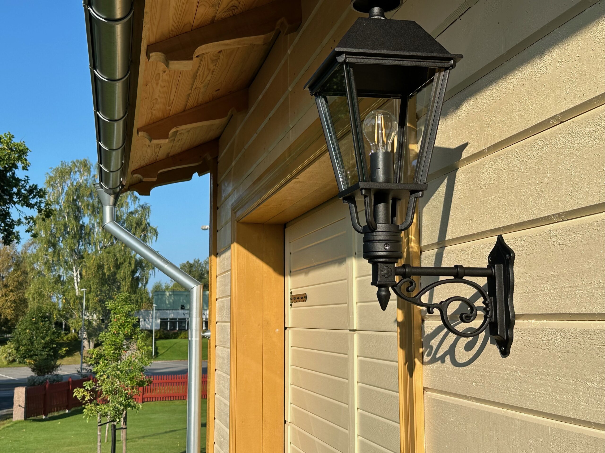 Vår utelampe har en 4-kantet lykt med et vakkert spir på toppen. Ekte glass gjengir et vakkert lysbilde. Det buede håndstøpte veggfestet blir et fint smykke med lyktehuset på fasaden din, en fasadebelysning som tiltrekker seg blikket i sin enkle og ekte klassiske design. Den klassiske vegglampen har en porselenssokkel med E27-sokkel, men det er også mulig å bruke LED i armaturene våre.