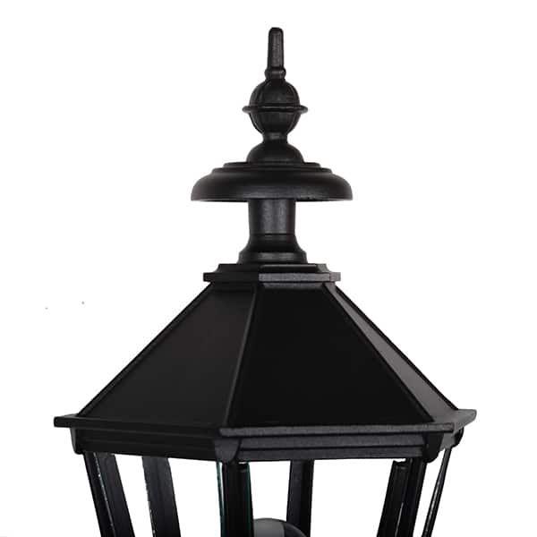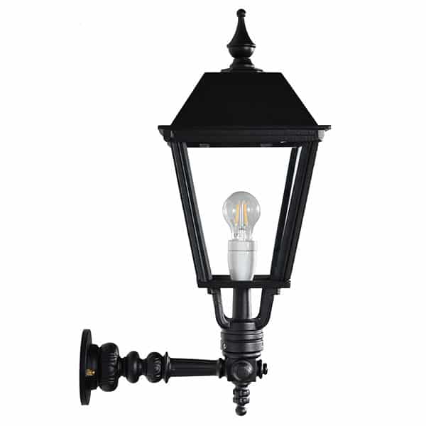 Vegglykten er laget av solid, håndstøpt aluminium, noe som gjør armaturen enkel å montere på veggen. Fasadelampen er pulverlakkert to ganger for best mulig beskyttelse, med en matt svart strukturfarge som gir en gammeldags, ekte følelse. Denne klassiske vegglampen er populær fordi materialet ikke ruster og er så vedlikeholdsfritt, en vegglampe for generasjoner!