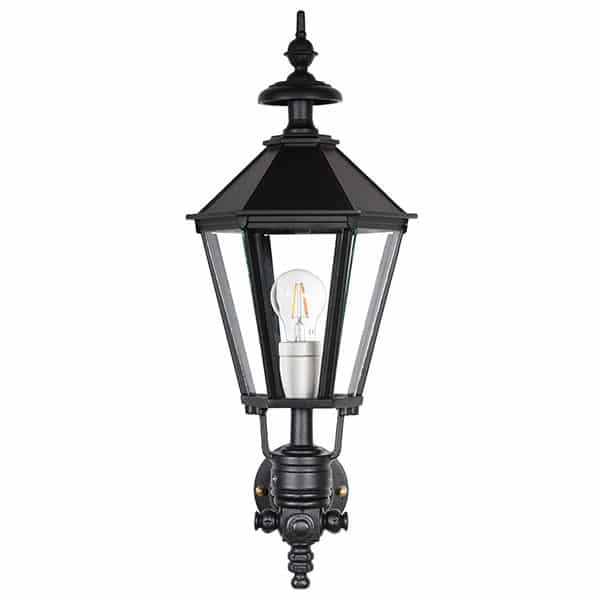 Fasadelampen er sekskantet og har ekte glass som gjengir et vakkert lysbilde. Det vakre, rette veggfestet blir et fint smykke med lanternehuset på fasaden din, en vegglampe som tiltrekker seg blikket med sin enkle og ekte klassiske design. Den klassiske vegglampen har en porselenssokkel med E27-sokkel, men det er også mulig å bruke LED i armaturene våre.