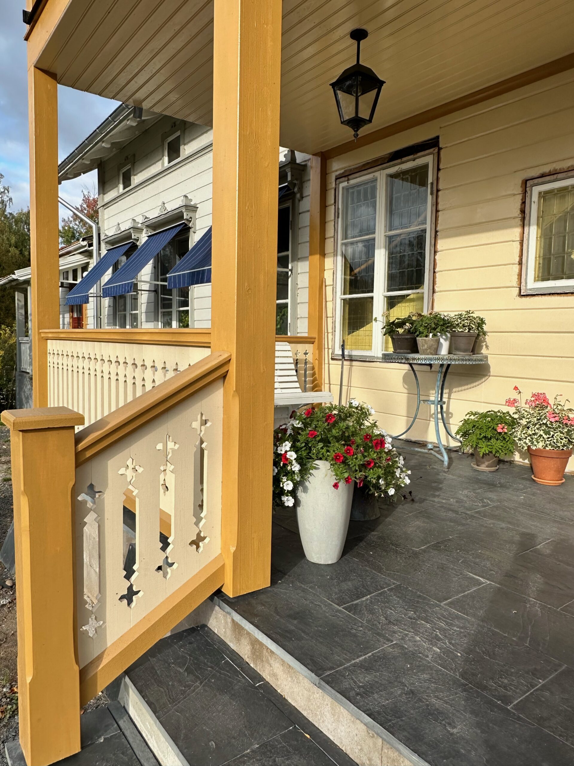 • Muggsopp fra århundreskiftet, vakker belysning på verandaen.