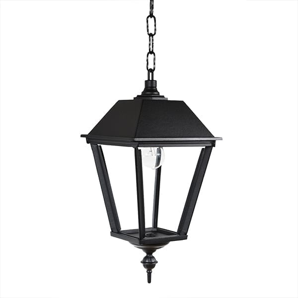 Lykten er laget av solid håndstøpt aluminium, noe som gjør den enkel å feste i taket. Vår kjettinglykt er pulverlakkert to ganger for best mulig beskyttelse, med en matt svart strukturert finish som gir en autentisk følelse av den gamle verden. Denne klassiske lampen er populær fordi materialet ikke ruster og er så vedlikeholdsfri, en vegglykt for generasjoner. Den klassiske lykten er en vakker belysning på verandaen eller uteplassen.