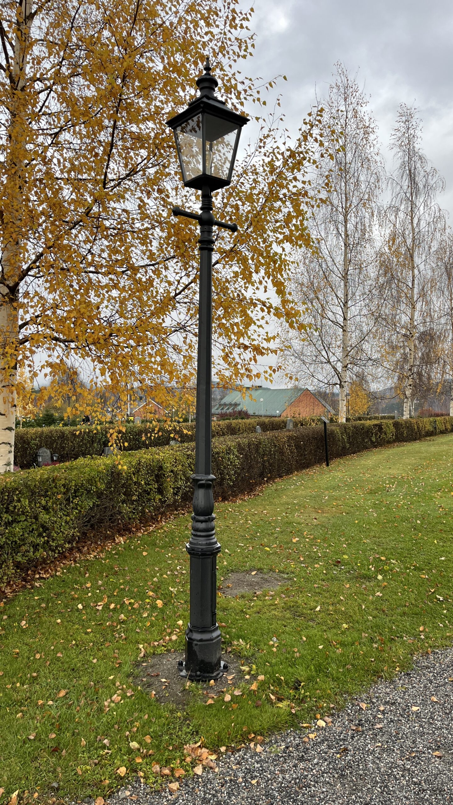 Våre lyktestolper i støpejern er laget av solid kvalitetsstøpejern, de er støpt for hånd, på gammeldags vis i sandformer slik det har blitt gjort i århundrer. Lyktestolpen og stolpen - alt er støpt i støpejern, til og med de små detaljene som det øverste spiret og fotpinnen. Hele utebelysningen er malt med korrosjonshindrende maling og deretter håndmalt i matt svart våtlakk - akkurat for å få den rette gammeldagse følelsen som du ønsker på disse klassiske lampene. Alle våre stolper leveres i tre deler. Lykten har en sokkel som kan brukes med E27-sokkel og LED-lamper. Lyktestolpen er CE-merket