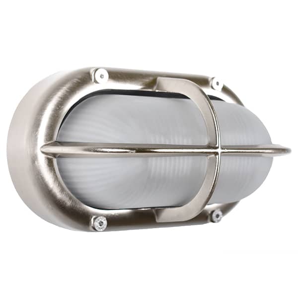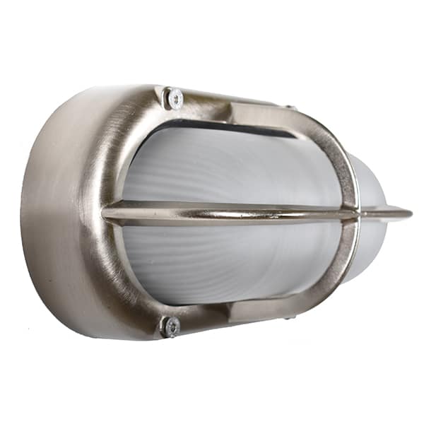 Vegglampe i maritim stil med solid messing og matt nikkelbelegg. Glasset er frostet for et koselig lysbilde. Virkelig solid armatur som tåler saltvann. Armaturen har klart glass, men finnes også i en frostet versjon. Stilig gitter i midten av denne vegglampen. Virkelig fin belysning til bassenget, sommerhuset eller villaen. Lampen leveres med E27-sokkel, noe som også gjør den egnet for en LED-lyskilde. Alle våre produkter er CE-godkjente.
