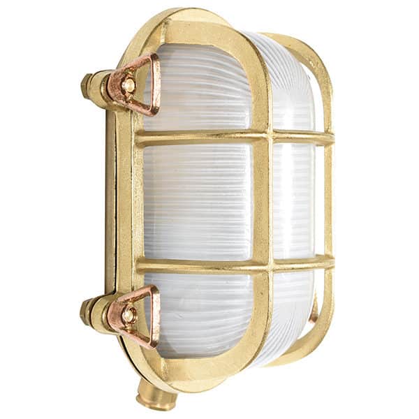 Vakker marin vegglampe som er enkel å plassere. Gir et behagelig lysskjær gjennom lampens glass som er frostet. Denne vegglampen er også utstyrt med et lampegitter for en liten ekstra detalj. Støpt i solid messing og meget godt utført. Messinglampen passer perfekt i et kystnært miljø! Vegglampen er veldig tidløs og passer til mange stiler, den er vakker selv for en mer klassisk eller moderne fasade. Belysningen egner seg også til å sette opp på en planke eller på en vegg. Lampen leveres med en E27-sokkel, noe som også gjør den egnet for en LED-lyskilde. Alle produktene våre er CE-godkjente.