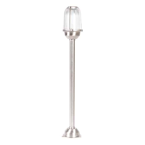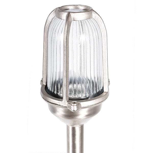 Vakker Pollare-støpt messing matt forniklet. Denne pullerten passer mange steder, i hagen, garasjeoppkjørselen, på terrassen eller i plenen. Pullerten gir en herlig marin følelse og er ideell for kysten, siden den er laget av messing, som er et svært værbestandig materiale. Det klare glasset gir et vakkert lys, og pullerten har akkurat passe høyde til å kunne plasseres på mange forskjellige steder for å få en fin lyseffekt i hagen. Den fine sølvfargen lyser virkelig vakkert opp, og pullerten føles veldig eksklusiv!