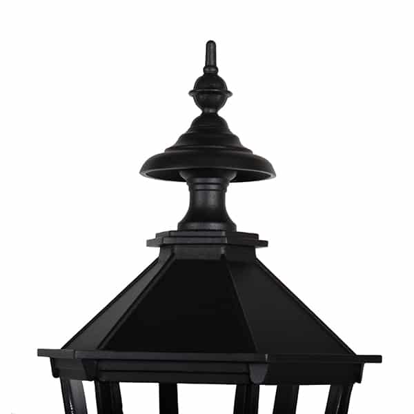 Vi har klassisk innkjørselsbelysning både i det lettere støpematerialet aluminium og i det robuste, tyngre materialet støpejern. Denne belysningen er håndstøpt i solid aluminium, noe som gjør den enkel å montere. Den slitesterke pulverlakkeringen i en moderne svart matt farge gjør at den har svært god beskyttelse, og det faktum at den er vedlikeholdsfri er noe mange liker, i tillegg til at denne portlampen ikke ruster. Glasset er ekte og gir et fint lys i mørket ved inngangen eller på portstolpen. En ekte klassiker som tåler tidens tann! Lampen har IP-nummer 23 og er CE-merket. Lampesokkelen er i porselen og har E27-fatning.