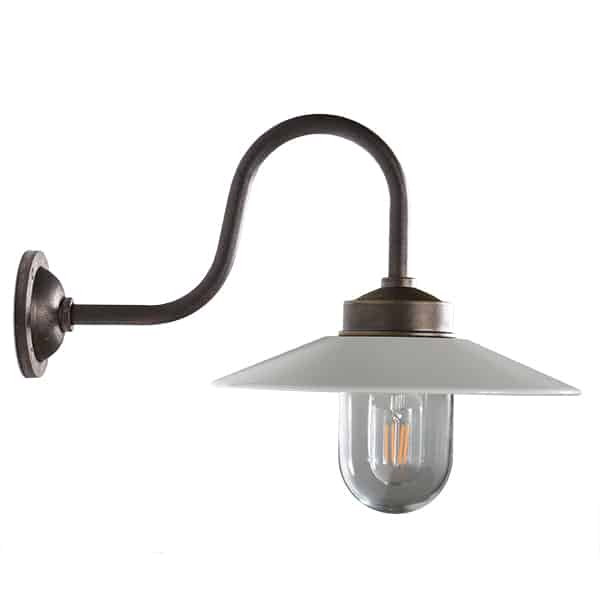 Staldlampe Koster svanehals antikk messing/hvit skjerm