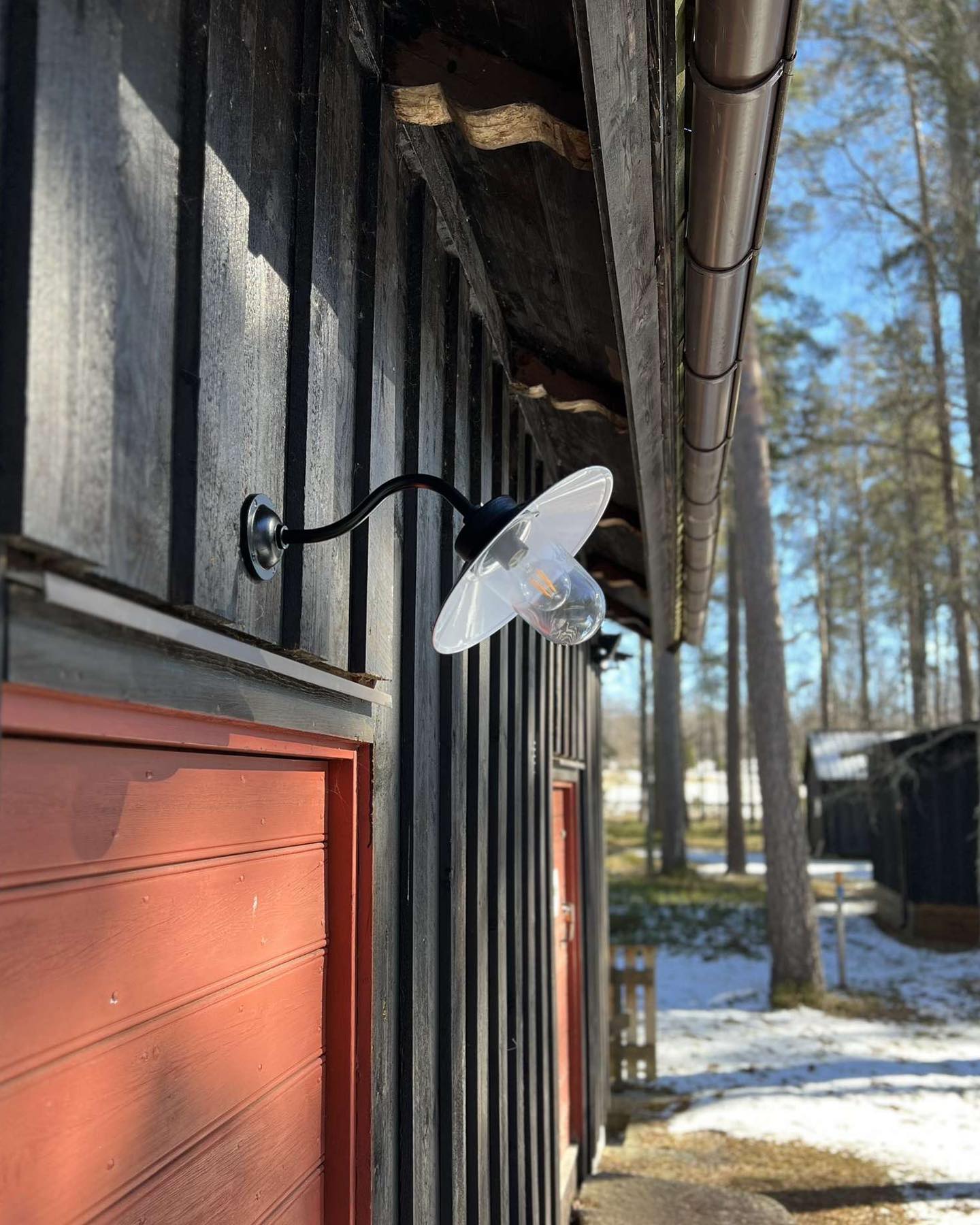 Denne halvklassiske stallampen passer til hus, uthus, uthus og staller osv. Modellen er designet for å passe til både gamle og moderne bygninger.