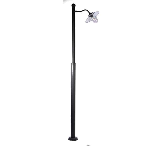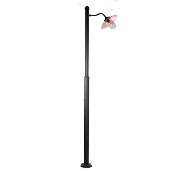 Kulturlampan er designeren bak denne modellen: Vi har laget en pen stolpe som er galvanisert og svartmalt. Lampen er laget av støpejern og har en emaljert skjerm. E27-sokkel som passer til standard LED-lyskilde. Sokkelen er 15 cm i diameter og har fire festehull med 9 cm CC. Røret er 8 cm på det bredeste stedet. Har også et deksel over sokkelen som er 17 cm i diameter