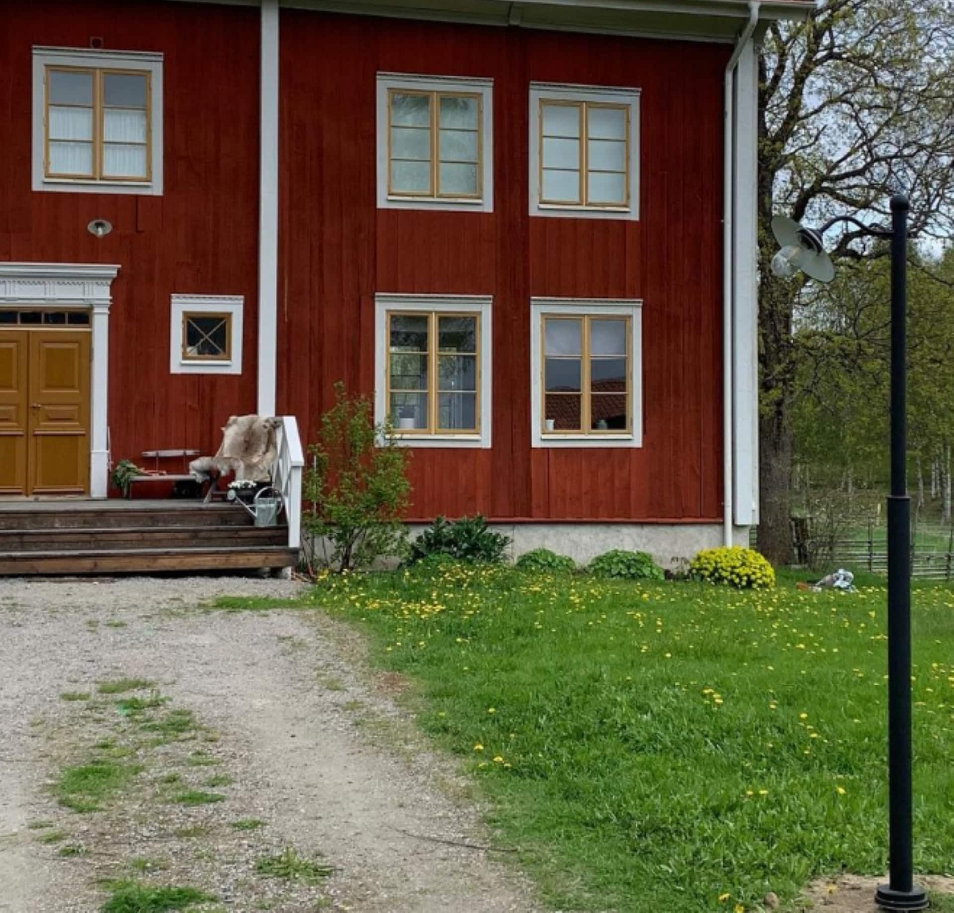 Vår vakre Stallyktastolpe i sitt rette miljø. Lyser opp veien til det fine huset!