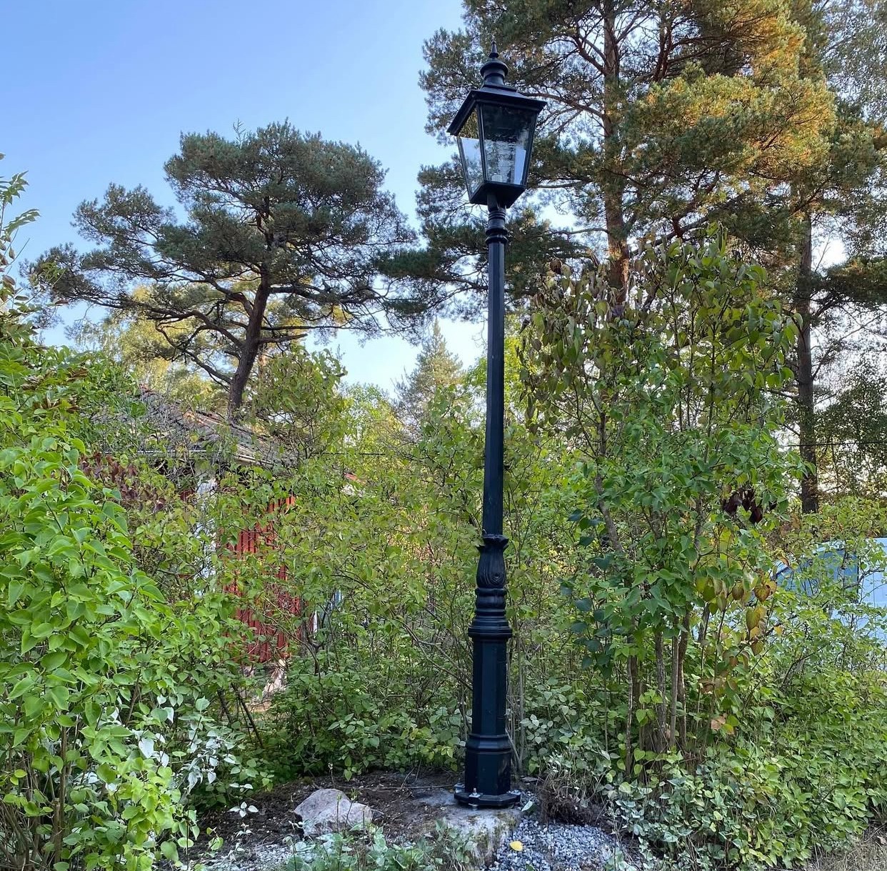 Stolpelanterne i støpejern fra vår kolleksjon. En svært godt laget utendørsbelysning for kommende generasjoner. Denne typen klassiske stolpelykt har lyst opp gater, torg, parker, hager og hus i århundrer. Stilen er elegant og tiltalende, og du kan føle og se at en stolpelanterne i støpejern er en robust armatur som vil pryde sin plass i lang tid!