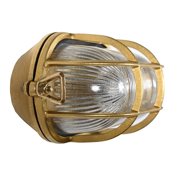 Vegglampe i maritim stil, solid støpt messing, vakker utendørsbelysning. Gir et behagelig lysskjær gjennom lampens glass. Denne lampen er også utstyrt med et lampegitter for en liten ekstra detalj. Glasset er klart, men fås også i frostet. Vegglampen passer til uteplassen eller bassengområdet, eller hvorfor ikke en tøff belysning til sommerhuset eller husfasaden. Lampen leveres med E27-fatning, noe som også gjør den egnet for en LED-lyskilde. Alle produktene våre er CE-godkjente.