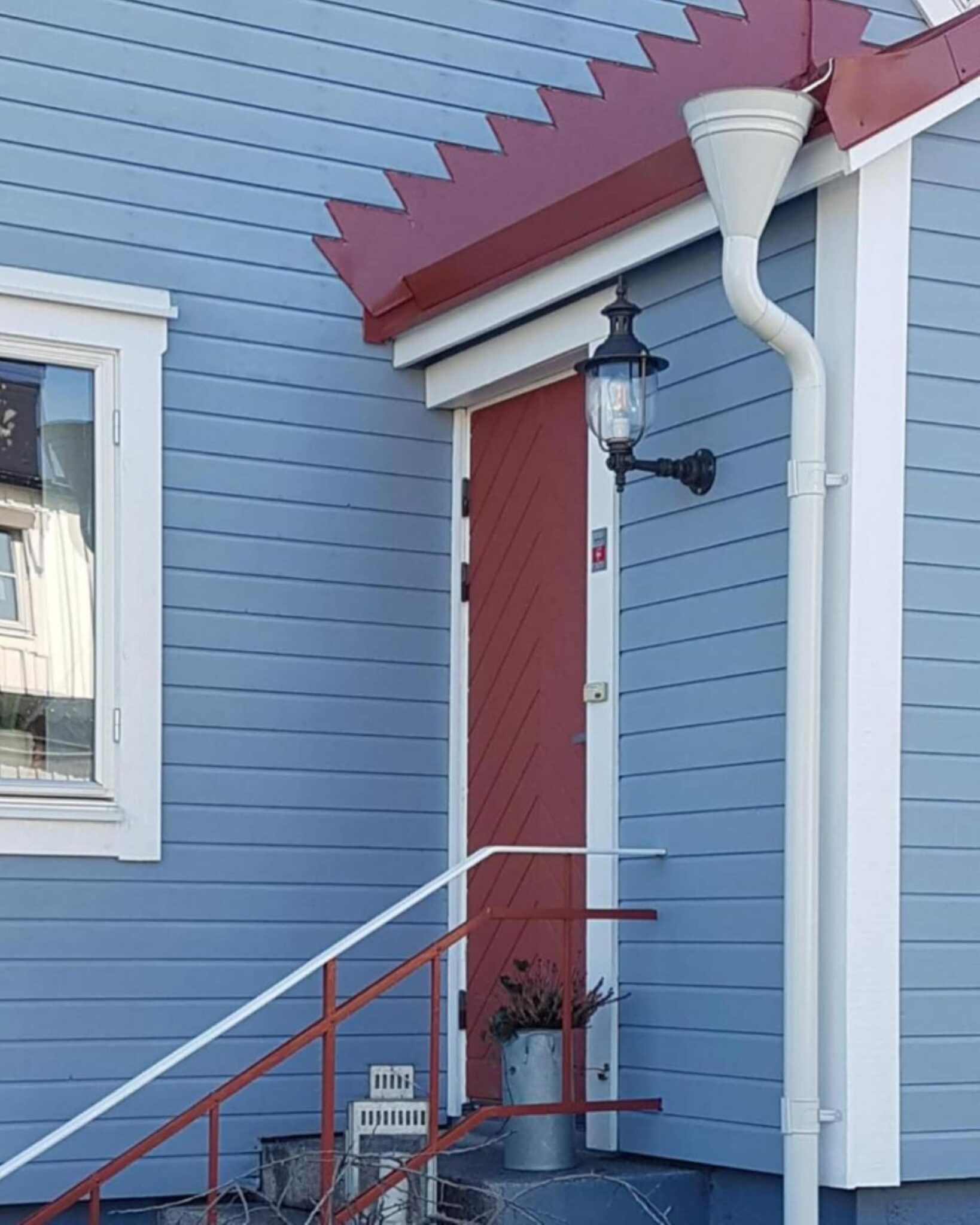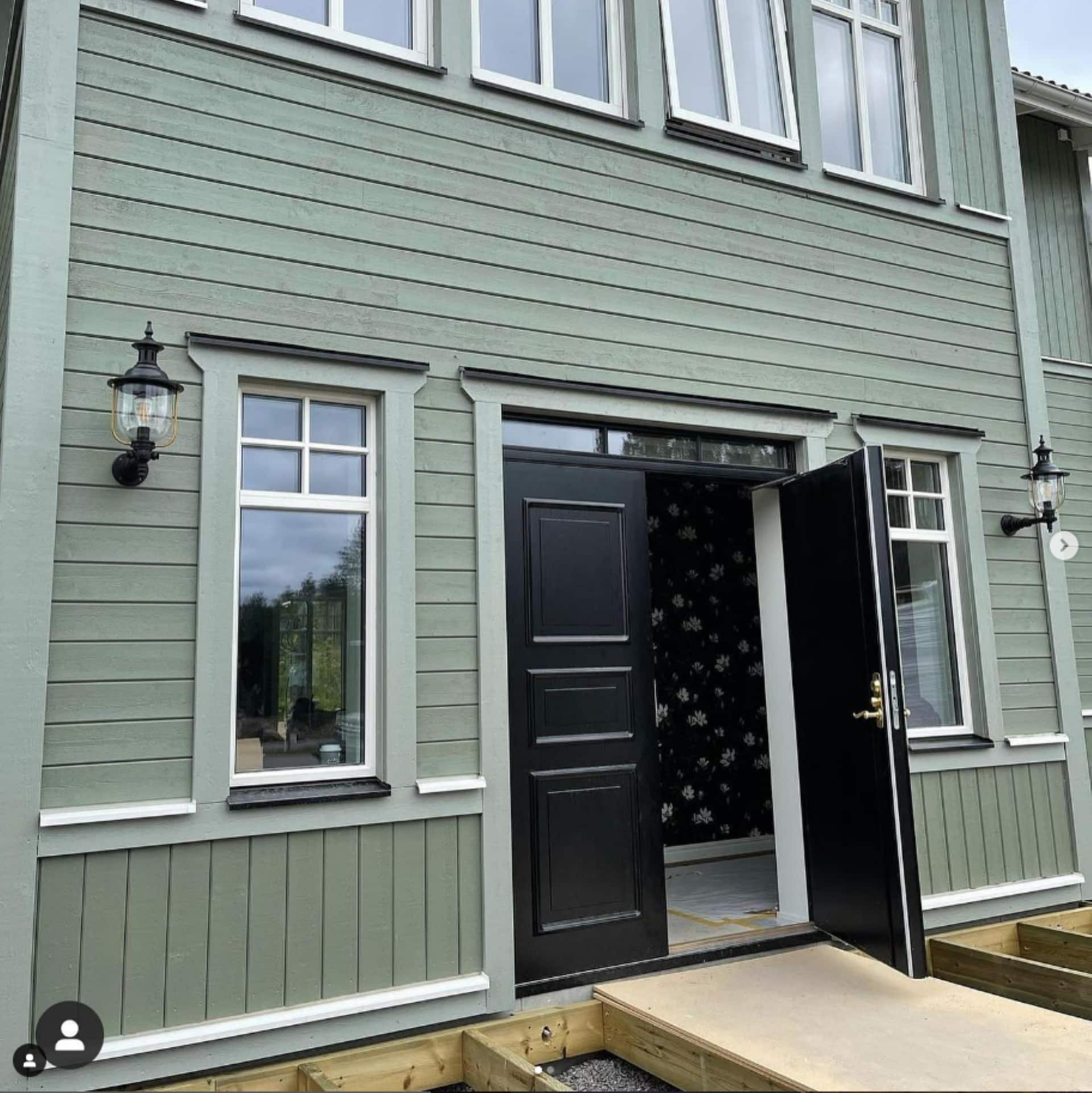 Vår vakre armatur er montert på et nydelig hus i århundreskiftestil med en fin grønn farge!