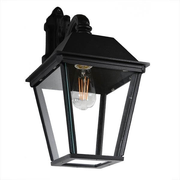 Armen og lykten er laget av solid, håndstøpt aluminium, noe som gjør denne utelampen enkel å montere på veggen. Fasadelykten er pulverlakkert to ganger for best mulig beskyttelse, med en matt svart strukturfarge som gir en gammeldags autentisk følelse. Denne klassiske lampen er populær fordi materialet ikke ruster og er så vedlikeholdsfri, en vegglykt for generasjoner. Denne klassiske utendørs vegglampen er vakker på mange steder, f.eks. over dører, ved siden av dørene ved inngangen eller på husfasaden.